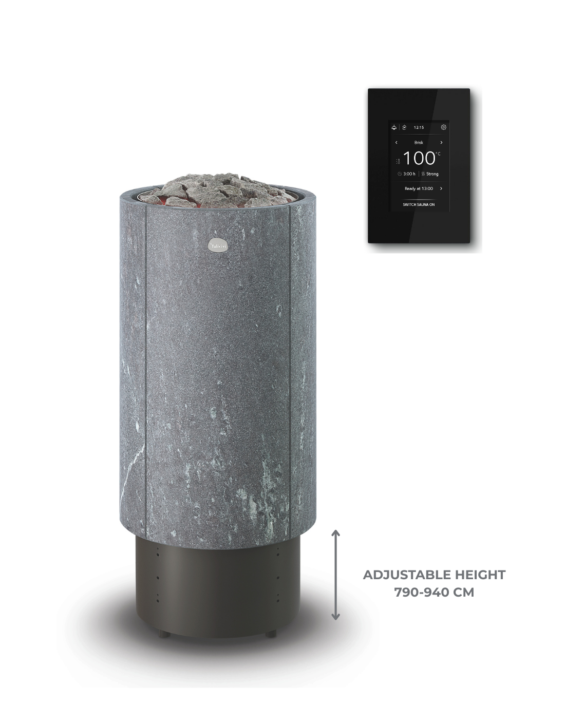 The heater set includes the new Tulikivi Wifi Black control panel.