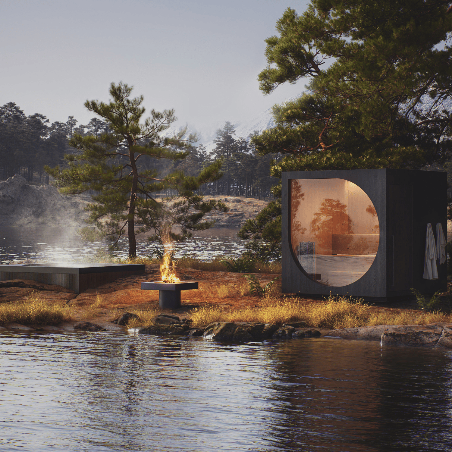 Papildinot Drop Sauna āra moduli, tika radīts stilīgs āra namiņš – Drop Lodge. Izņemot lāvas, krāsni un grīdas trapiņu, konstrukcija pārtop par ideālu atpūtas namiņu.