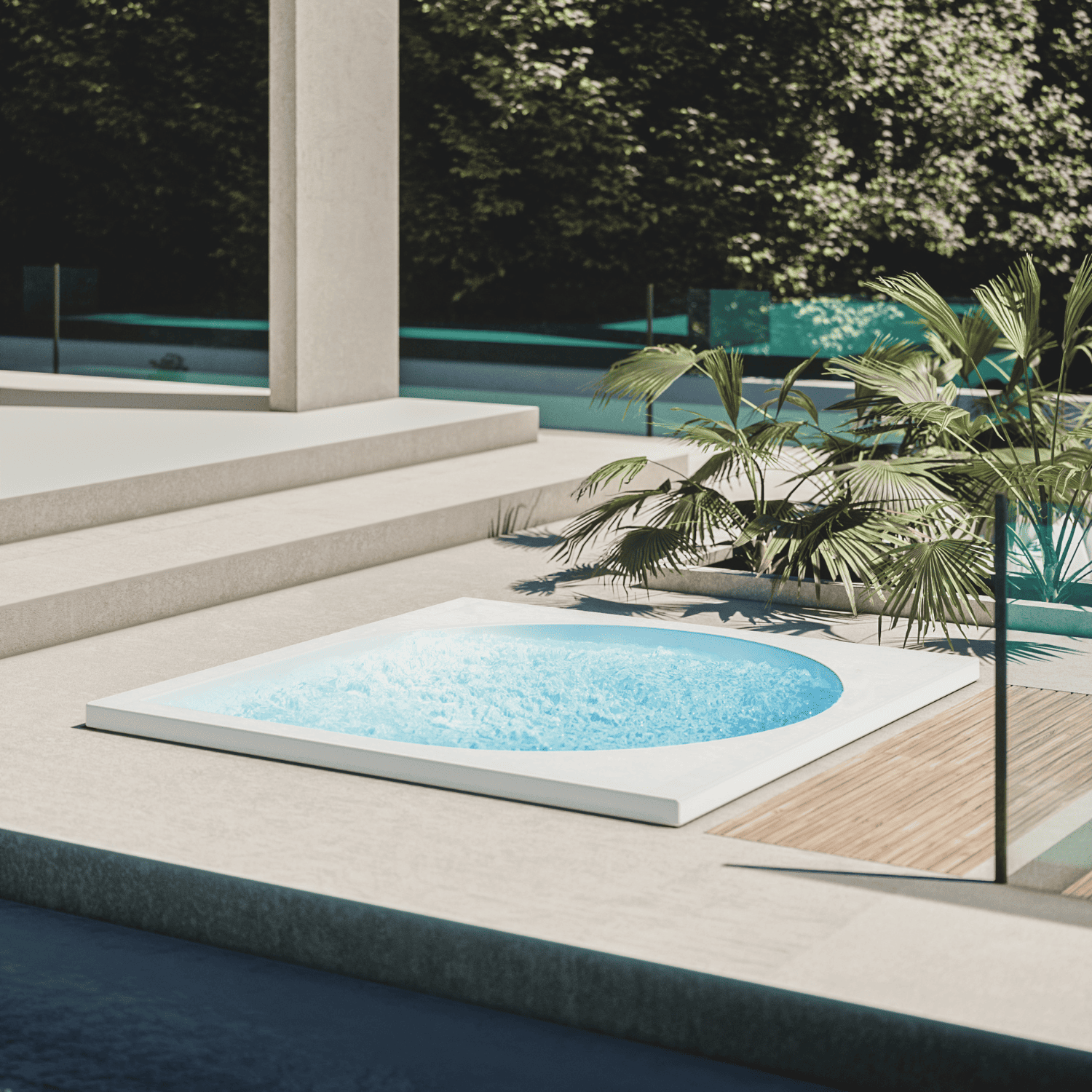 - Iestrādāts terasē (pilnībā vai daļēji iegremdēts) – šajā gadījumā jānodrošina piekļuve spa apakšējai sāna daļai, kur atrodas tehniskais mezgls.
