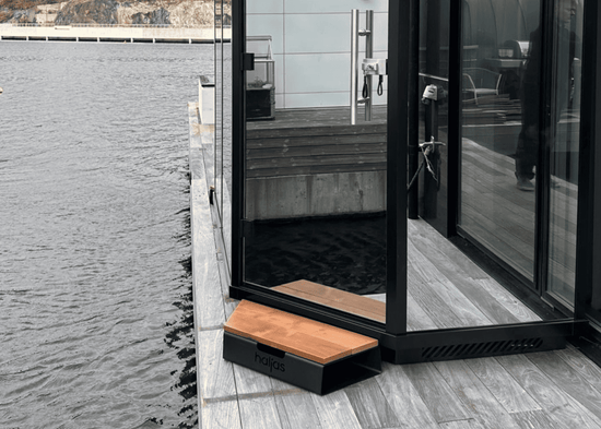 Papildus pakāpiens ar ražotāja logo – ērtākai iekāpšanai saunā.