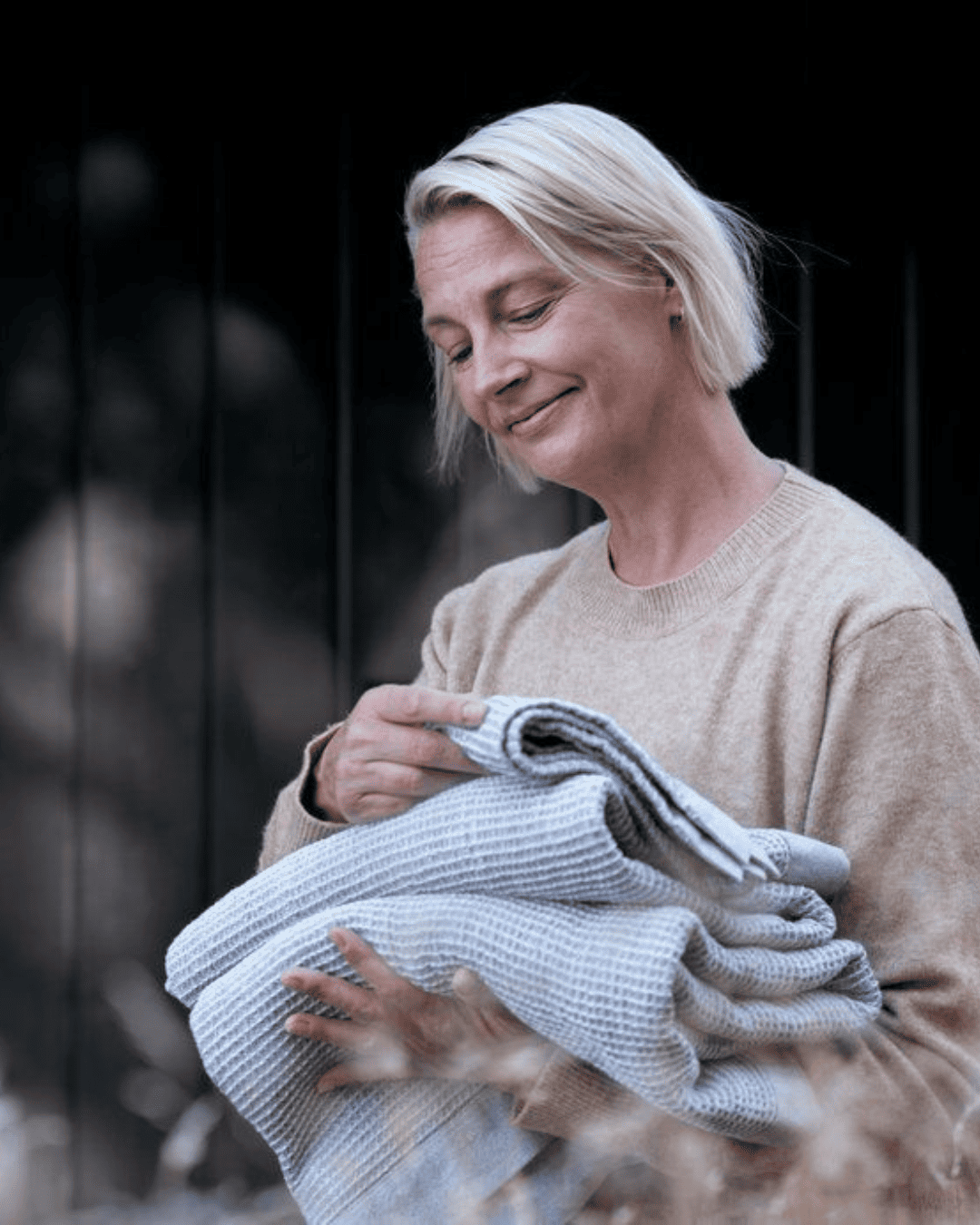 Vairums tekstila mūsu kolekcijā ir izgatavots no vafeļkokvilnas, kas īpaši radīta lietošanai pirtī. Tā ātri žūst, neuzsūc mitrumu, ir maiga un patīkama ādai, kā arī nodrošina lielisku gaisa caurlaidību un komfortu pat augstā temperatūrā.